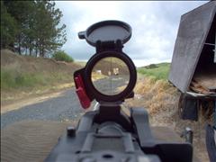 | Not all of the boxes are full. I estimate there were 450 rounds total comsumed in the testing. I used my shot timer (on the left) to time some of the shooting. I averaged about one second between shots and seven seconds for a magazine change. I had three five round magazines with me. I would empty them in under 30 seconds. I would reload the magazines in just over a minute and immediately start shooting again. |